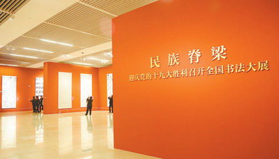 “民族脊梁——迎庆党的十九大胜利召开全国书法大展”展厅一角