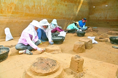 考古人员在发掘出土临时性建筑遗址。李鹏摄/光明图片