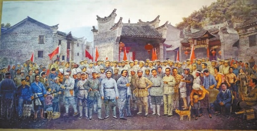 湘南的汝城县城,是中国革命史的特定坐标:1927年11月,朱德与湘南、粤北地方党组织负责人在汝城县衡永会馆召开为期三天的联席会议。此次会议在思想上、组织上、军事上为1928年元月发动的湘南起义作了必要的准备。1928年1月11日,朱德、陈毅率领部队打响了湘南起义第一枪。李春祥,作为一个勇于担当有使命感的画家,以画笔为时代立传,在史实基础上,以视觉图像的方式,为红色革命发祥地展开宏大叙事,不但给人以艺术的熏陶,而且能从中学习中国革命史,传承红色文化。这是我反复阅读他创作的《湘南起义·汝城会议》等系列水彩画作品的所想。