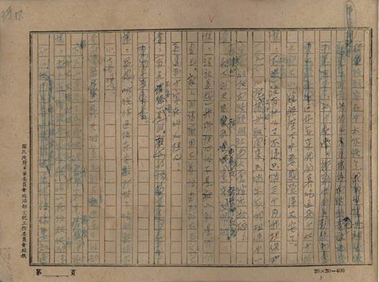 整篇手稿用蓝色钢笔写在20×20的方格稿纸上,稿纸纸张粗粝,与我们对战时重庆的物资供给情况的想象一致。整本手稿共计215页,有修改痕迹。修改明显可以分成前期和后期两个阶段,以蓝色与黑色字迹相区分。阳翰笙的笔迹稍显潦草,显出为创作激情驱使而奋笔疾书的战斗状态。