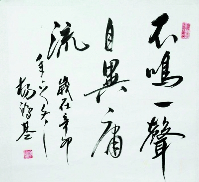原来,两个月来,杨洪基一点也没懈怠,一有空就钻进书房,用不同的字体、不同的版式写了100多幅,但他仍觉得不满意。每天,他将比较满意的字放在桌面上,要求第二天必须超过这个水平。原本他准备继续写,直到最满意再给阎俊茹。没想到小阎上门来取了,杨洪基这才将书桌上的横版和竖版两幅字交到阎俊茹手里,阎俊茹感动得说不出话来。