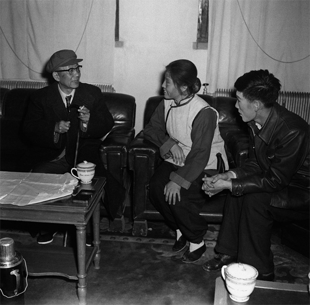 作家老舍与乌兰牧骑队员探讨文艺创作(1963年,呼和浩特)