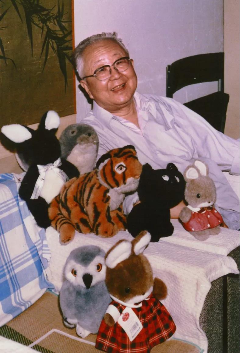 活动现场启功先生家人章景怀不仅带来几幅启功先生与各种玩具的合影,还抱来了照片中启功喜爱的一个大青蛙毛绒玩具,并讲述了启功先生令人难忘的生活细节,图片为其中一张。