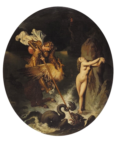 这幅油画作品取材自16世纪意大利诗人阿里奥斯托的长篇叙事诗《疯狂的罗兰》中所描绘的情节,讲述了安吉莉卡被囚禁在泪之岛上,正在危难之时,勇士洛哲骑着半鹰半马的坐骑赶来营救安吉莉卡。馆长维吉耶-杜泰伊说,安格尔这幅作品中,安吉莉卡的身体被描绘得十分优美,又有悖于自然规律,“一个人的头不可能扭成安吉莉卡那个样子,她的臀部也过大,但是整个曲线就像乐符一样优美,与洛哲的动作、神兽的曲线都有一种呼应。”