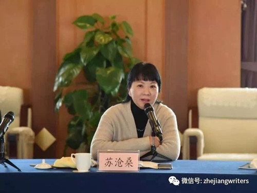 钱小芊在杭州开展座谈调研。浙江省作协党组书记、副主席臧军,党组副书记、省网络作协主席曹启文,党组成员、秘书长晋杜娟,省作协副主席汤汤及在杭作家、网络作家代表参加座谈调研。