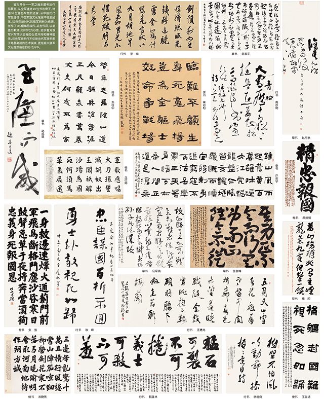 鉴古开今——军之魂主题书法作品展览,从全军遴选20位书法骨干,特邀36位著名军旅书法家,从中国历代军旅诗词、中国军旅文化名言中拾金拈玉,以党在新时代的强军目标为统领,创作了136幅精品佳作。这些作品,以笔墨为载体,以时代为心旌,追求着对强军兴军伟大征程的心灵共鸣和精神皈依。这些军旅书作不仅是当代军旅书家于笔墨毫端的艺术实践,更是振兴强军文化理想信念的时代升华。