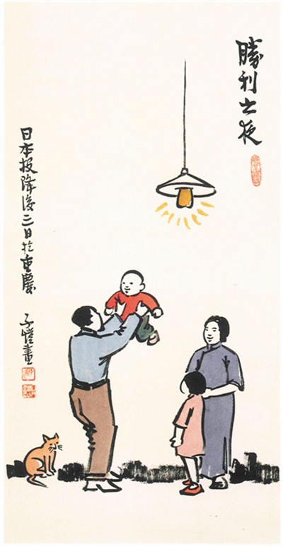 丰子恺的漫画概括洗练,以仁爱之心描绘童真天趣,充满生活情趣,如《阿宝两只脚,凳子四只脚》《瞻瞻底车(二)脚踏车》,也有对民族复兴的歌颂和期望,如《归来报明主 恢复旧神州》《胜利之夜》等。丰子恺的漫画,成为一代代中国人心向美好、热爱生活的心灵温泉。