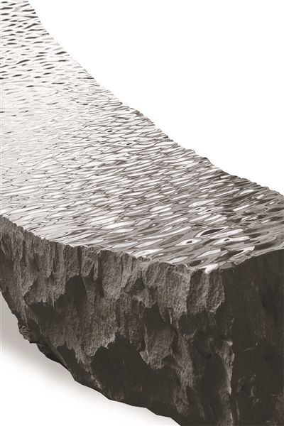 《雨》系列。《雨》系列作品是艺术家最重要的创作脉络。如果《跷跷板》系列作品谈的是人与人之间的关系,那么雨系列作品谈的便是物与物之间的关系。用坚硬的花岗岩去模仿柔软的水滴这是一件非常危险的事情。因为在当今流行的艺术创作方法中,用一种材料去模仿另外一种材料是常见的,也更容易获得普遍的认同。而在雕塑艺术作品的创作中,这种方法体现得比绘画或是影像作品更为明显。说是一件危险的事情是对流行的警惕,因为这类作品永远都要面临解释一件物为什么要模仿另一件物,一件物为什么不是另外一件物的终极问题。禅宗里面有一段高僧怀让磨石为镜以此点化马道一的故事,讲的便是石头终究是石头,不论如何打磨不成镜子的故事,以此隐喻北宗禅打坐、念经、持戒无法立地成佛的道理。但艺术终究不是为了讲道理,参禅悟道,我们又回到“技”与“艺”的探讨中。在沈烈毅《雨》系列作品中,我们能感觉到艺术家近乎极致的执念,每一件作品都像修行般的苛刻,从选材到永无尽头的打磨,让作品的创作过程成为了作品最重要的一部分。区别于流行的雕塑创作,我们很难找到用有形物去模仿无形物,用永恒去模仿瞬间的作品案例。而沈烈毅用有形的石头去模仿无形的雨,用永恒的石头去模仿雨无形的瞬间便是作品的高明之处。在别人都谈论物与物之间的区别的时候,艺术家赋予了两种毫不相干的物体的联系。
