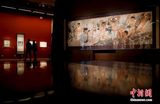 1月25日,中国美术馆举行新年展,“民族与时代——徐悲鸿主题创作大展”“花开盛世——中国美术馆藏花鸟画精品展”“笔墨当随时代——弘扬新金陵画派精神江苏美术采风展”同时开幕。中新社记者 杜洋 摄