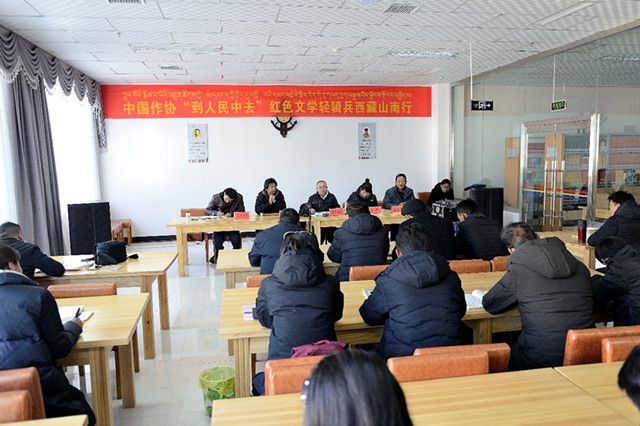为落实习近平总书记做“新时代红色文艺轻骑兵”的重要指示精神,按照中宣部《学习贯彻习近平重要指示精神,做新时代“红色文艺轻骑兵”的通知》要求,1月22日,由中国作协主办,西藏作协协办的“到人民中去”红色文学轻骑兵山南行活动在西藏自治区山南市举行,由西藏文联巡视员、作协常务副主席吉米平阶、《西藏文学》主编次仁罗布、《西藏文艺》编辑拉央罗布组成的作家和文学刊物编辑小分队就文学创作与基层文学爱好者进行辅导和交流。山南市和周边地区写作者、文学爱好者共计70余人参加了此次活动。