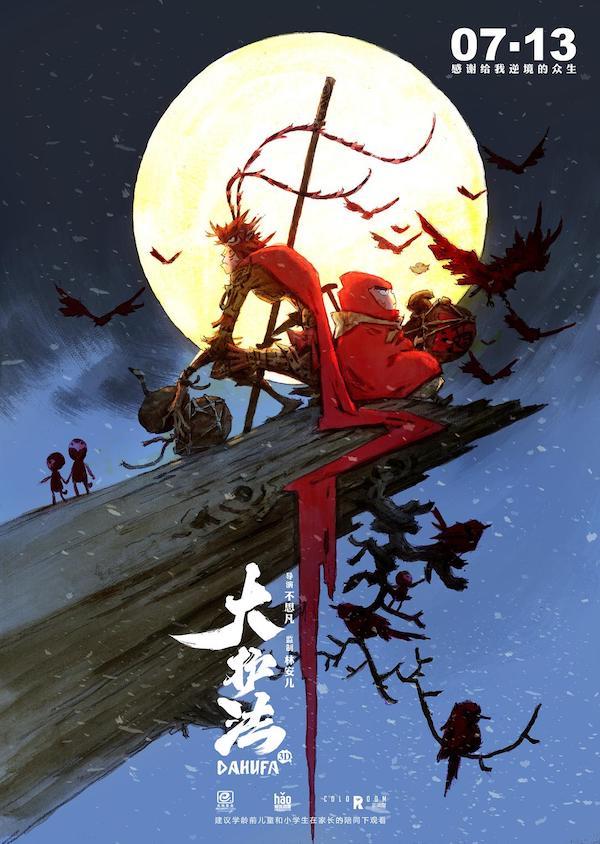 因为《大护法》,国产动画开始排起了“大”字辈:《大圣归来》《大鱼海棠》《大护法》……当被问及如何看待这几部动画电影很可能会被拿来做比较时,彩条屋CEO易巧轻松回答:“在这方面我没有任何压力,因为这三部都在彩条屋。” 光线旗下彩条屋甚至动用了助力海报的形式:在《大圣归来》助力《大护法》的海报里,悬月大若冰盘,大圣和大护法背对背坐在枯枝上,两张脸上冷峻的表情竟几乎对称。