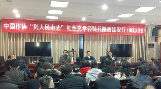 2月2日,中国作协“到人民中去”红色文学轻骑兵陕西延安行活动在延川举行。《人民文学》主编、中国作协主席团委员施战军作了“伟大传统与新时代文学”为主题的文学讲座,并与在场的文学爱好者进行了互动交流。延川县委常委、宣传部长党晓明,陕西作协副秘书长、创联部主任王晓渭,县文联、作协及部分文学爱好者100余人参加活动。讲座由陕西省作协副主席、延安大学文学院院长梁向阳主持。