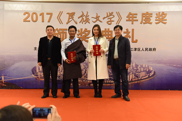 3月2日,2017《民族文学》年度奖颁奖典礼在重庆江津举行。活动由《民族文学》杂志社、重庆市作家协会和重庆市江津区人民政府共同举办。旨在挖掘与培养优秀文学力量,提升民族文学原创力,组织作家深入生活、扎根人民的同时,繁荣少数民族文学创作,用开阔而多彩的民族视野讲好中国故事。