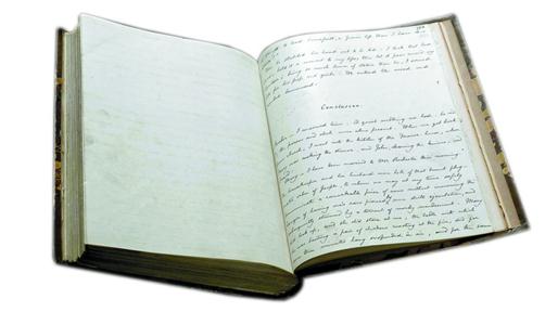 此次展览将展出的大英图书馆珍稀藏品,有夏洛蒂·勃朗特的《简·爱》原稿,包括最后一章的名句:“读者,我嫁给了他”。在《简·爱》创作手稿誊写本(第三册)上,有很多排字工人沾了油墨的指印,还有几位工人的铅笔签名。