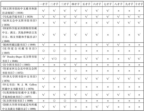 其次, 关于“才子书”的书目著录, 儒莲和巴赞早就注意到“才子书”未见于中国书目, 特别是钦定书目的著录。儒莲曾提及巴黎藏有一本一百二十卷八开本的书目, 著录了1736年至1795年在位的乾隆皇帝的藏书。然而“才子书”等小说、戏曲均未见著录。儒莲和巴赞指出这种著录的阙失并非出自偶然, 而是出于中国人, 特别是官方对“才子书”等说部所持有的根深蒂固的鄙薄观念。然而, 与受到国人轻视的待遇相反, 包括“才子书”在内的说部在西方则备受青睐, 因之, 西人所编中国古典小说书目往往对“才子书”加以著录, 且其著录方式大抵有两种:第一, 将“才子书”分散, 或杂入其他典籍一起著录, 如雷慕莎的《国王图书馆中文藏书和新目录规划》、艾约瑟 (Joseph Edkins) 的《牛津大学图书馆中文书目》等;或并入“小说”类加以著录, 如修德 (Samuel Kidd) 的《亚洲文会中文图书馆书目》、伟烈亚力 (Alexander Wylie) 的《汉籍解题》等。第二, 将“才子书”设为子目, 单独著录。如巴赞的《才子书述略》与高第的《西人论华书目》。“才子书”在西人所编中国小说书目中的著录不仅证实了西人对“才子书”的重视和青睐, 而且当“才子书”被作为子目单独著录时, “才子书”又在一定程度上被视为一种亚文类 (Sub-gener) , 从而引发了西人关于“才子书”文类特征的一系列讨论。