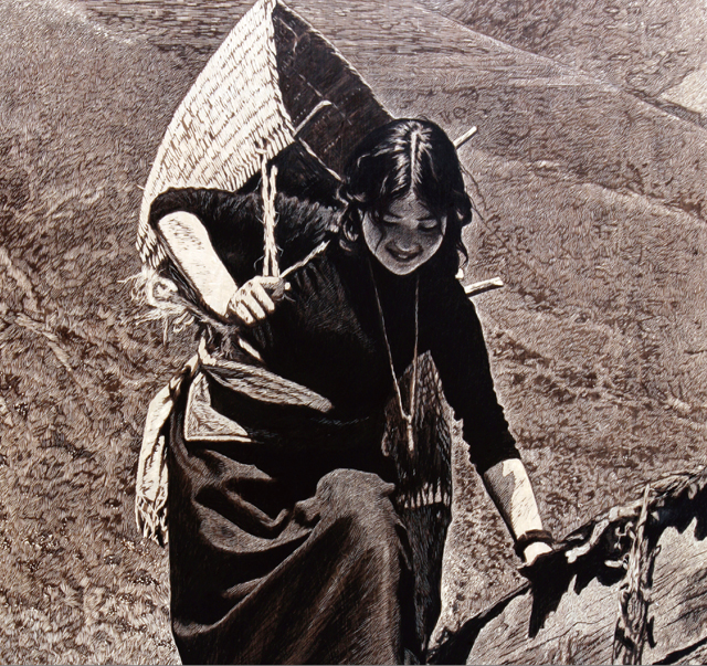 此次展出的独版画多来自徐匡年轻时扎根西藏的题材,我们能从画面中读出他对少数民族地区人民的热爱和对美好生活的向往,徐匡擅长作品的构思和意境的营造,对主人公微妙的感情及细节刻画入木三分,他娴熟的刀法又能让画面风格达到松与紧、放与收的自如境界。这也是他的独版艺术极具感染力的原因。