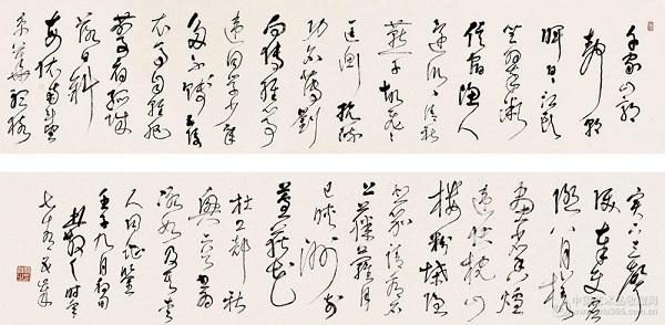 也许傅雷没有想到,林散之欣然应允。他遵照傅雷的要求,画了八幅不同风格的山水画。这八幅山水画,林散之用心画着,每一幅有每一幅的构思,每一笔有每一笔的讲究,为此,林散之曾说:“予为怒庵画册页八开,由初春而深冬,水墨、着色者相间,浓淡有序,动笔之前便有大体上构思,下笔时细节有变动,但大纲未变。总体构思疏忽,每幅可看,放在一起便不协调。八开中有‘重头戏’,《嘉陵江》取斜势,小中见大;一页得郭熙遗意,云头皴似牛毛,笔笔相顾;一页近子久,多次积墨,较为沉厚。……”