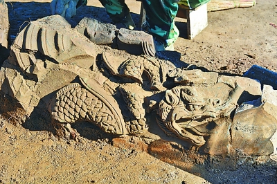 吉林安图宝马城金代长白山神庙遗址出土的鸱吻一侧龙纹 图片来源:全国十大考古新发现评选活动办公室