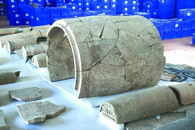 陕西西安秦汉栎阳城遗址出土的巨型筒瓦 图片来源:全国十大考古新发现评选活动办公室