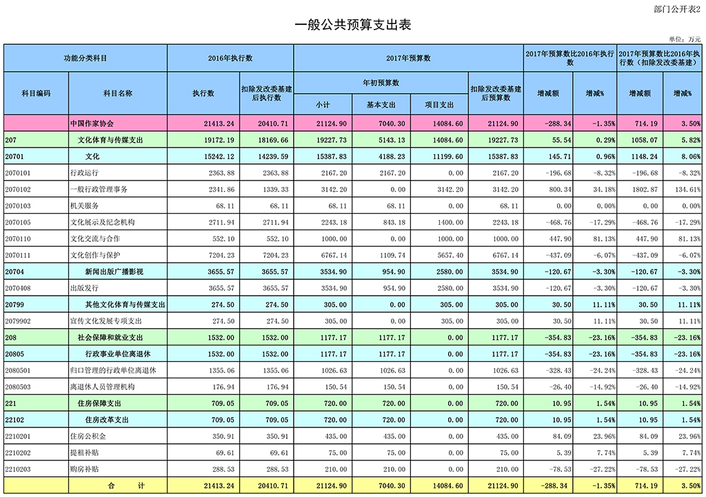 九、文化体育与传媒(类)文化(款)机关服务(项):指中国作协机关服务中心人员支出。