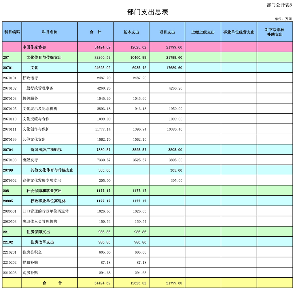 十一、文化体育与传媒(类)文化(款)文化交流与合作(项):指中国作协本级组织作家对外文学交流所需的项目支出。