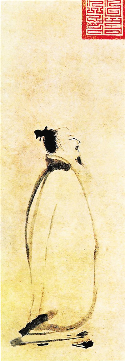 不难看出,在构思《太白行吟图》时,梁楷对李白的外在形貌进行了尽可能简化的处理。虽然没有肖似的形貌再现,但观者同样能对画面中的诗人形象产生认同。究其原因,则在“传神”。可见,梁楷的《太白行吟图》正是充分体现了中国人物画“以形写神”造型特征的代表之作。