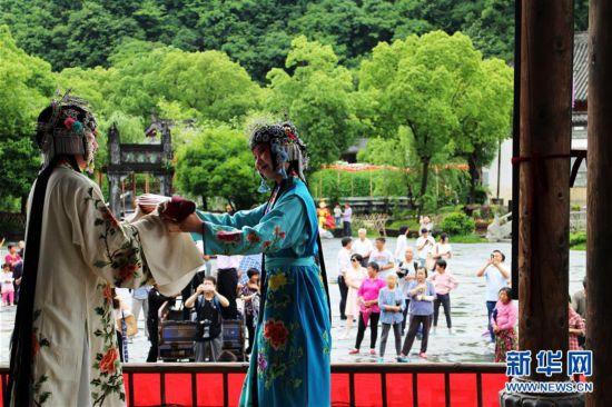 5月19日是第八个中国旅游日,江西省旅发委统筹了主题为“全域旅游,美好生活”的旅游活动。婺源县江湾景区设立的上饶分会场将两大非物质文化遗产徽剧和傩舞搬上了古戏台供游人欣赏。