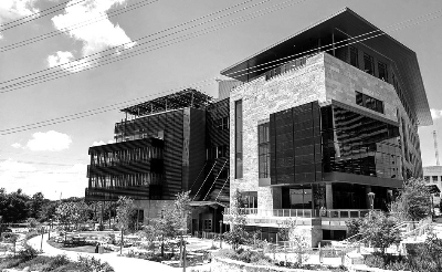 得克萨斯州奥斯汀中央图书馆。奥斯汀中央图书馆充斥着各种新技术和创新发明,为终身学习搭建了框架,也支撑着“弹性社区”的发展。可以说,这家图书馆是全美最具时代特色的图书馆。近20万平方英尺的馆舍中心是光线充足的6层中庭,周围环绕着图书借阅室和活动空间。该馆获得了美国绿色建筑白金认证。由于得克萨斯州水资源紧张,整个建筑高度重视节水功能。图书馆有一个容积为37.3万加仑的蓄水池,用来存储屋顶雨水和空调冷凝水。这些水可以用于清洁厕所,还可以为景观和屋顶植被提供灌溉。
