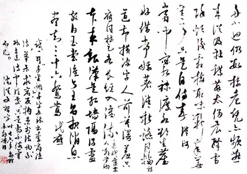 我是从老诗人曹辛之那里了解沈从文书法的。曹辛之是沈从文的好友,七十年代初,他们两家住得不远,常常来往。沈从文新写了字总喜欢会拿到曹辛之家里给他看,也常把自己写得满意的字送给曹辛之。沈从文去世后,曹辛之发现自己竟有了数十张沈从文的字。