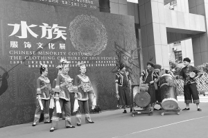 图为水族服饰文化展开幕式上的水族歌舞表演。