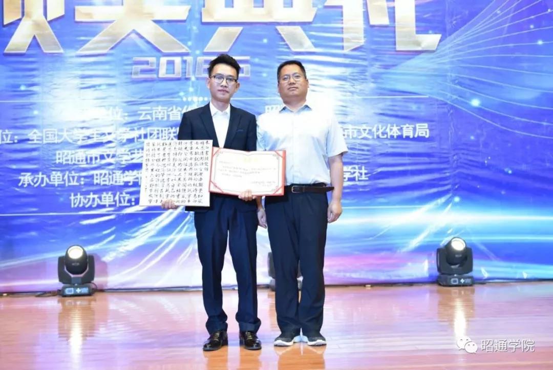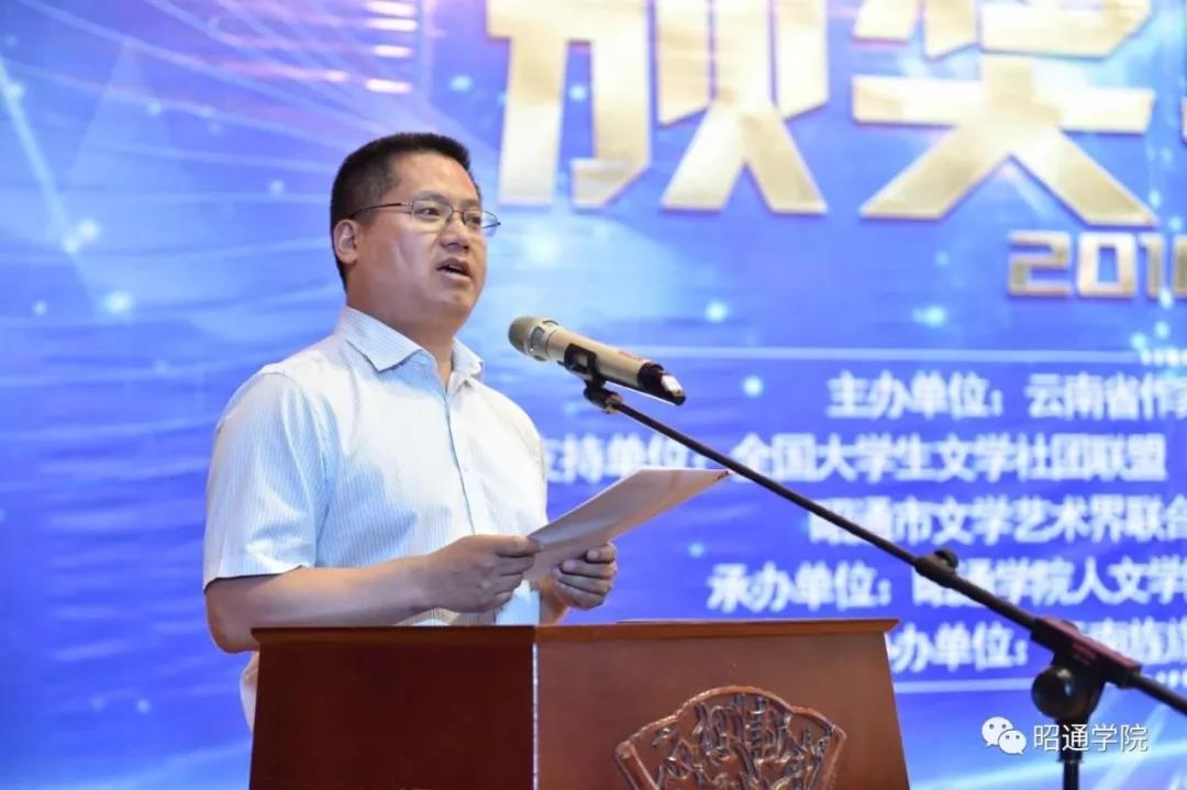 中共昭通市委常委、组织部部长陈真永,昭通市人民政府副秘书长邹邦才、昭通市文化体育局局长施华滟、昭通市文联主席吕亚平、昭阳区区委常委、宣传部部长沈洋,昭通市文联副主席艾自由,著名评论家、暨南大学文学院二级教授、国务院政府特殊津贴专家、博士生导师宋剑华博士,著名作家、《花城》杂志名誉主编田瑛,著名188体育官方ios家、北京作家协会驻会专业作家周晓枫,著名诗人、《十月》诗歌编辑谷禾,青年评论家、188bet金宝搏备用网址团委书记、全国大学生文学社团联盟秘书长顾超等省外专家,著名作家、云南省作家协会副主席胡性能,著名诗人、云南省作家协会副主席雷平阳,著名作家、大理大学文学院院长、云南省作家协会副主席纳张元,著名作家、云南民族大学二级教授、云南文艺评论家协会副主席李骞等省内专家学者,昭通作家和学校党政领导出席此次颁奖典礼。