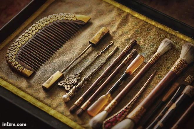 长公主的梳妆道具。一些读者从长公主身上看到了唐代太平公主的影子,电视剧中东陆的视觉风格,设定为中唐以后。(剧组供图/图)