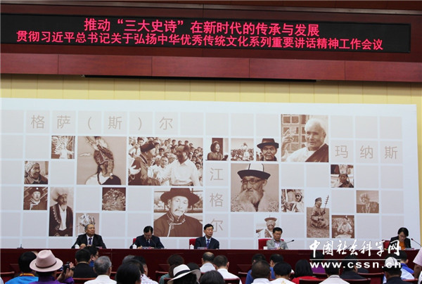 习近平总书记关于弘扬中华优秀传统文化的系列重要讲话精神,是习近平新时代中国特色社会主义思想的有机组成部分,是进一步做好《格萨(斯)尔》《玛纳斯》《江格尔》“三大史诗”传承发展工作和推进学术研究的根本遵循。习近平总书记在中央民族工作会议、文艺工作座谈会、第十三届全国人民代表大会第一次会议等重要场合述及“三大史诗”,激励中华各族儿女发扬伟大创造精神,实现中华文化的创造性转化和创新性发展。因此,为了更好地推进中国史诗学学科建设,推动中国多民族史诗传统的赓续和发展,2018年5月24日由中国社会科学院民族文学研究所主办、口头传统研究中心承办的“推动‘三大史诗’在新时代的传承与发展——贯彻习近平总书记关于弘扬中华优秀传统文化系列重要讲话精神工作会议”在北京召开。这次会议是中国社会科学院登峰战略优势学科“中国史诗学”建设项目组的年度重大计划之一。