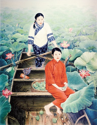 李乃蔚的写实工笔人物画似乎不带有特别的观念性,他没有颠覆传统工笔画和创立新的写实画派的意图,但他把画画得极致,在传统的基础上推进写实的技巧。正如他自己所说:“每个时代的艺术家都有其特定的表达方法,而人生际遇、性情禀赋的差异又使其表现方式千姿百态……”为画好一件作品,他预先精心设计,制作过程长达两三年,一个色块要反复画数十遍,人物形象更是精雕细琢,力求尽善尽美。