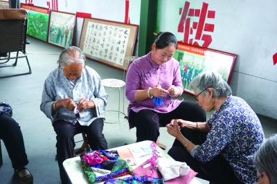 78岁的李以英是崔家沟社区居民,她坦言,按自己一天绣5片荷包算,每天收入近50元。“当了一辈子农民,离开土地还能有这样一份收成,这在以前想都不敢想。”李以英说。据村民梁士兴介绍,每有新的绣法,车间就有专人负责传授,“老手艺”不断翻新样,也让她们这些见证了费县手绣技艺传承发展的“老人”颇感欣慰。