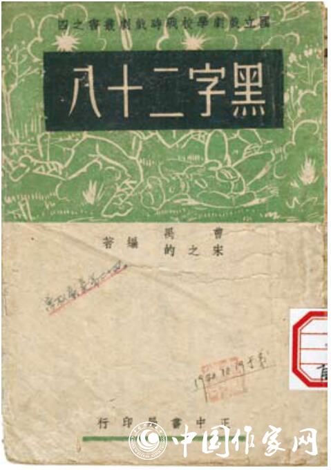 《黑字二十八》为曹禺、宋之的所著戏剧。1940年3月初版。正中书局印行。国立戏剧学校《战时戏剧丛书》之四。