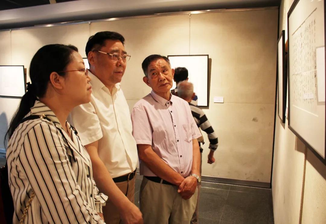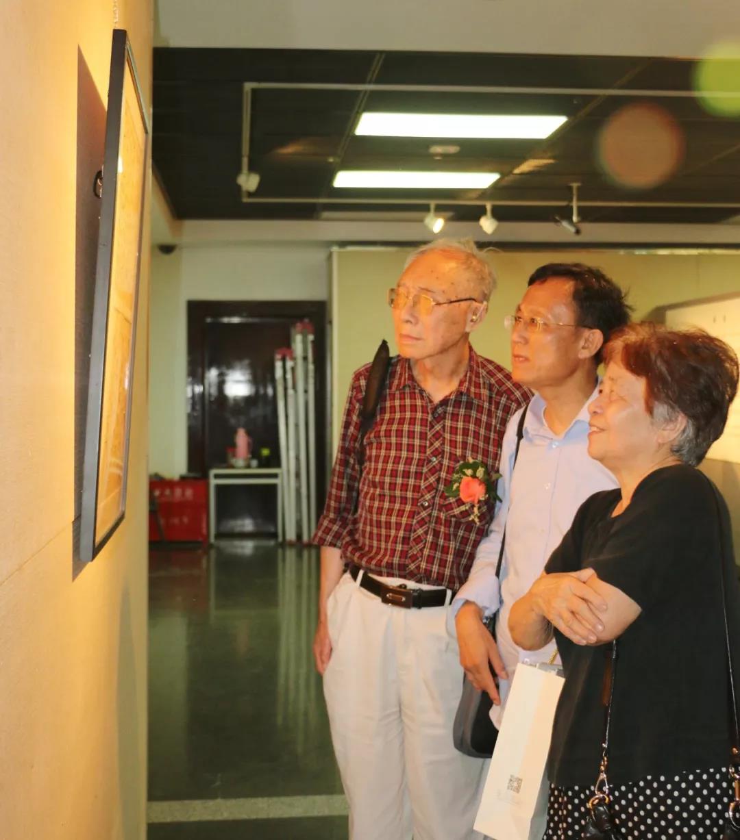 龙榆生儿子龙英才(左)、儿媳(右)参观展览