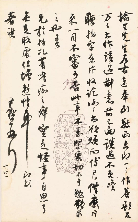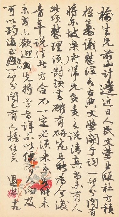 与观众见面的一百余件的手札,是龙榆生教学、研究、编辑、写作过程中,与彼时硕学通儒之士的往来信函,讨论社会问题,交流吟诵诗词之道,切磋读书体会,言述离别思念之情。沉郁或诙谐的文辞,古雅或简逸的书法,描绘出中国传统文人之间的往来图景。手札作者有许多上海人,也有与上海关系紧密的人,其中包括新中国上海第一任市长陈毅,著名出版人张元济,著名社会活动家、学者叶恭绰,著名诗人赵朴初,著名书画家沈尹默、刘海粟、傅抱石、吴湖帆、丰子恺、潘伯鹰、黄宾虹、钱君匋等。