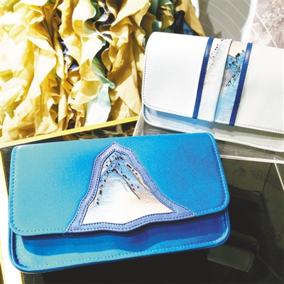日前,非遗传承人群研培计划优秀成果展举行,图为学员制作的“千里江山挎包”。 本报记者 郑海鸥摄