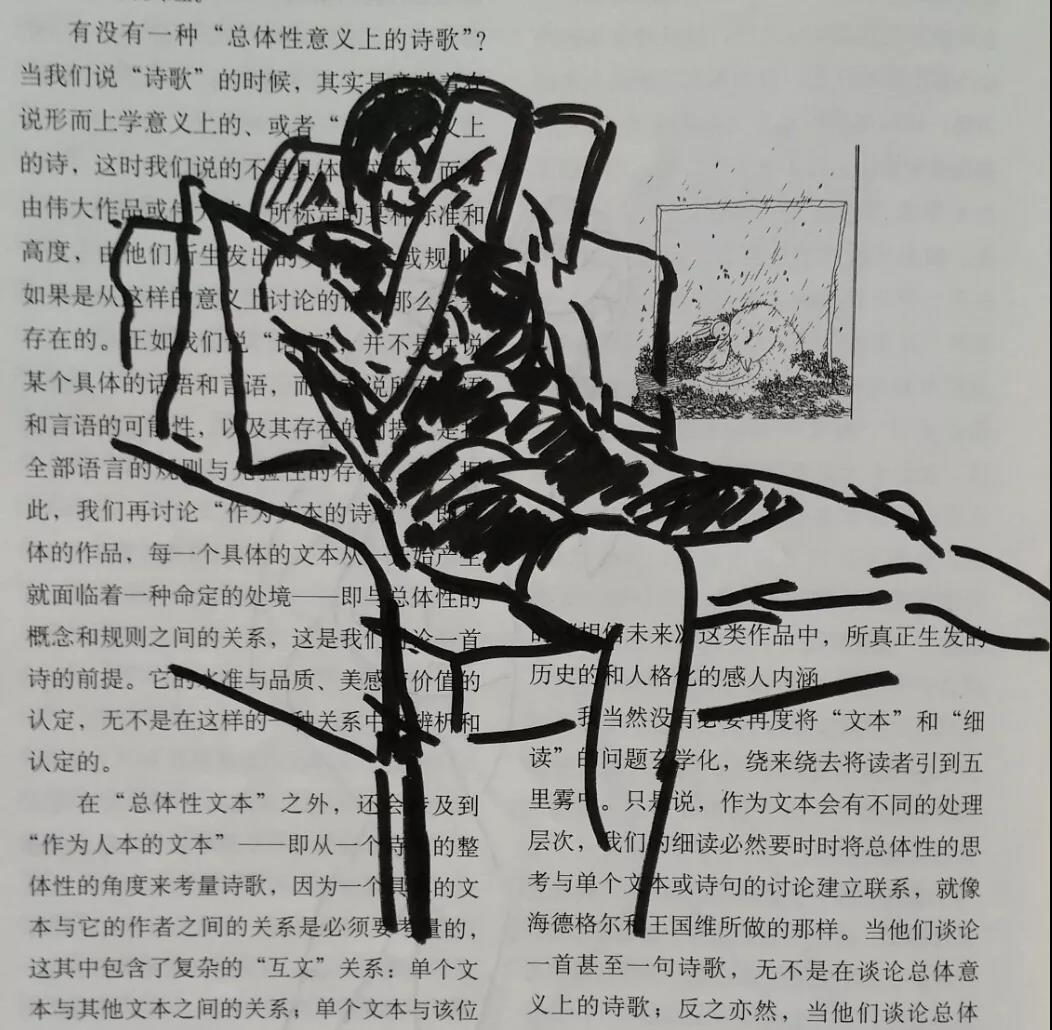 我时常在诗刊上随手涂鸦。我不懂诗,也不写新诗,所以基本上不怎么看诗刊。但诗刊印制得不错,用纸也不错,而且,内文留有大量的空白,正好适合画两笔,便常在上面画。由于不是正规的画本或画纸,所以不那么拘谨,可以随心所欲,信马由缰。乐趣便也是别处画画所没有的。所谓游野泳,或荒原驰马,别有一番畅快的心致。