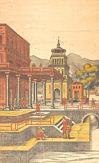 西洋剧场图92.8×47.4cm墨版套色敷彩清乾隆辽宁省博物馆藏