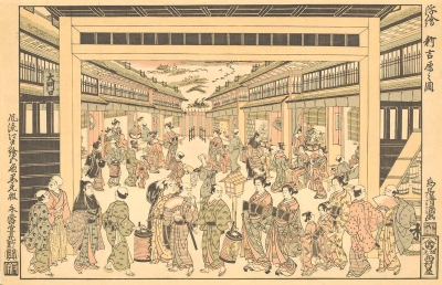 新吉原之图(鸟居清满浮绘)29.5×44.5cm大倍版红摺绘18世纪中期私人藏