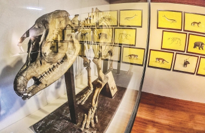 “世纪典藏——上海博物溯源”特展正于上海市历史博物馆举办,图为现场展出的恐龙骨骼标本。袁婧 摄