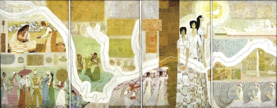 任丽君《长江——中华的荣耀与希望》工作稿,1982年。这是她为当时十六铺客运站新候船大厅三层楼高的壁画而起稿设计的