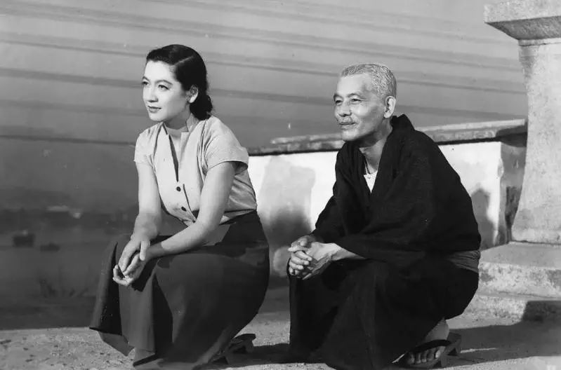 这方面,日本导演对于时空的把握往往有西方导演所不及之处。例如小津安二郎,他的电影往往直接以时空为片名,例如《晚春》《秋日和》《麦秋》等,最有意思的是,名字为“秋”,表现的却是“夏”。他的主人公一出场就喜欢这么打招呼:“今天真热啊。”更有意思的是,如研究者指出的那样,小津电影中的主人公都是在盛夏晴朗、炎热的那一天死去,并且总是在盛夏时节穿着隆重的丧服。《东京物语》可以看作是一场盛夏的死亡,更是迄今世界电影中对炎热印象最完美的表达之一。而《浮草》摄入了一段酷暑的时空,它不仅体现在草虫的声音、不停挥舞的扇子(不同身份的人使用完全不同种类、不同图案的扇子)、底层风俗业女人脸上被汗水弄花了的劣质脂粉、几乎人手一条的擦汗毛巾这类极为令人信服的细节上,更为重要的是,酷暑的燥热、突然的大雨、午后的静谧,与在此时此地,主人公、中年流浪剧团老板喜八的危机,面对私生子各种复杂的情绪如此完美地有机融合在一起。有心的观众一定能感知并深深感动。写到这里不知为什么想起设计师原研哉的“触感(senseware)”了。最近在观看是枝裕和的《小偷家族》时,同样得到了熟悉的夏日的“触感”。