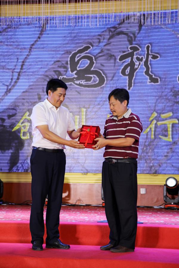 北安市副市长孙金伟向蒋建伟颁发《乌裕尔》顾问聘书。