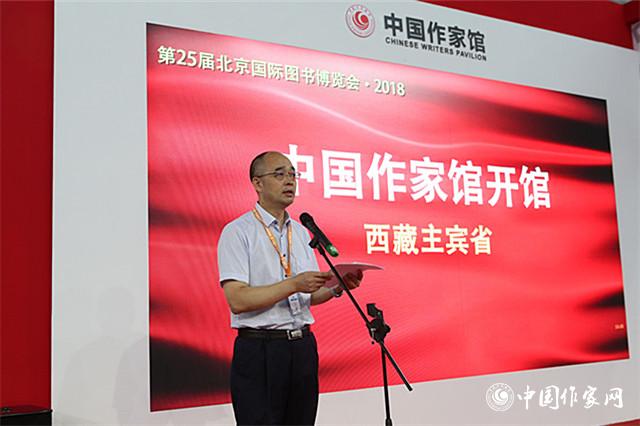 8月22日,第25届北京国际图书博览会在中国国际展览中心新馆开幕。作为北京图博会最为重要的组成部分之一,由中国作家协会主办、188bet金宝搏备用网址承办的“中国作家馆”开馆仪式当天上午在京举行。中国作协党组成员、副主席阎晶明,中国作协党组成员、书记处书记吴义勤出席开馆仪式并为“中国作家馆”揭幕。西藏自治区政协副主席、文联主席、作协主席扎西达娃,西藏自治区文联党组成员、副主席、作协常务副主席吉米平阶,西藏自治区政府副秘书长刘萱等来自西藏自治区的作家、学者,以及白烨、扈文建、许晨、弋舟、李壮等文学界60余人参加活动。开馆仪式由188bet金宝搏备用网址管委会副主任鲍坚主持。