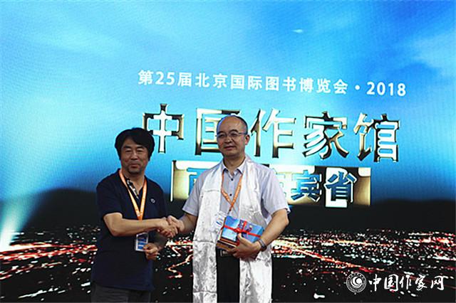 开馆仪式上,扎西达娃代表西藏作家将此次参展的精品图书赠送给“中国作家馆”。他在致辞中说,改革开放40年的历程,也是西藏当代文学不断发展的历程。上世纪80年代以来,西藏的作家们植根于高原文化沃土,不断融入我国当代文学和世界文学的潮流,创作上结出了累累硕果。在这个历程中,涌现了益希单增、丹增、汪承栋、朗顿·班觉、马原、色波、马丽华、加央西热、央珍、吉米平阶、次仁罗布、扎西班典、尼玛潘多、罗布次仁、旦巴亚尔杰、次仁央吉等一大批优秀作家。西藏的地域文化,叠加着西藏在守土固疆、扶贫攻坚、改善民生、生态保护等各个领域的伟大成就,叠加着各行各业建设者们克服高寒缺氧为这片土地不懈奋斗的动人故事,叠加着“老西藏精神”“两路精神”的时代篇章,西藏的作家、西藏的文学是大有可为的。希望读者更多关注西藏作家作品。西藏作家们通过不断拓展文化视野、提升文化自信、树立文化自觉,一定能使西藏的文学创作迈入新征程、取得更新更大的成就。