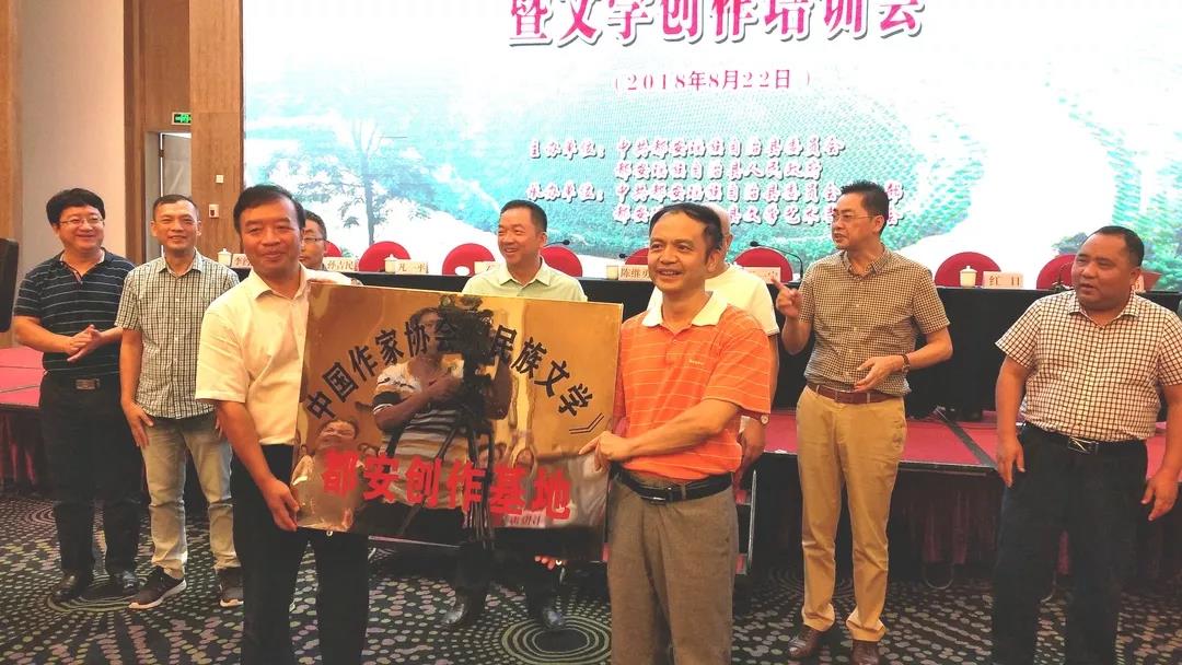 “《民族文学》都安创作基地授牌仪式暨文学创作培训会”8月22日在广西都安瑶族自治县举行。《民族文学》主编石一宁,广西河池市副市长兼都安县委书记陈继勇,广西文联副主席石才夫,广西作协主席东西、副主席潘红日、凡一平、李约热等出席。都安县委副书记黄伟主持授牌仪式和文学创作培训会。