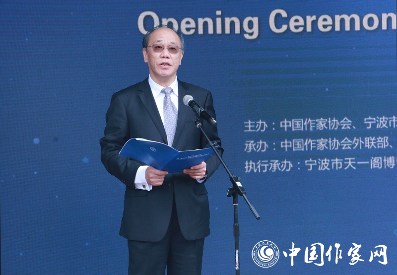 阎晶明在致辞中回顾了中东欧国家文学对中国近现代作家的影响,真诚希望文学论坛能为巩固和发展中国与中东欧国家之间的文明互赏互鉴、民心相连相通、友谊历久弥新发挥积极推动作用。他总结了改革开放以来中国文学界的繁荣发展局面,介绍了中国作协开展对外文学交流的新成果,希望中外作家的沟通交流能够增进友谊、加深理解。宁波市副市长许亚南致欢迎辞。浙江省作协主席麦家和罗马尼亚作协常务副主席、前经贸部长瓦鲁然•沃斯加尼安分别代表中国作家和中东欧作家致辞。25位中东欧国家的作家将自己的作品赠送给天一阁博物馆永久珍藏。